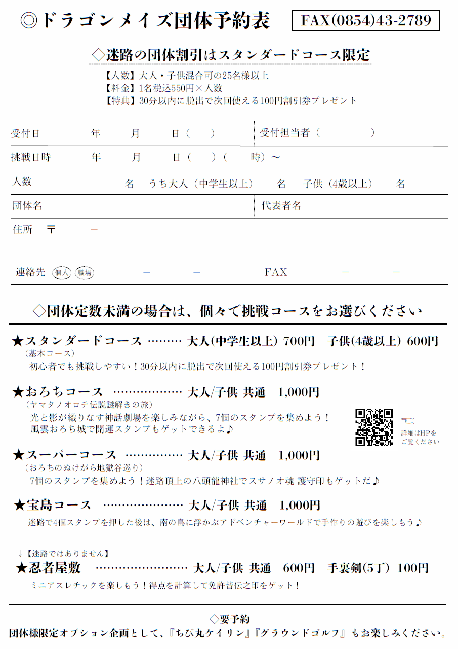 料金¦大人子供 共通 600円 手裏剣(5丁) 100円