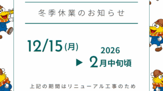 12/15(月)~冬季休業します