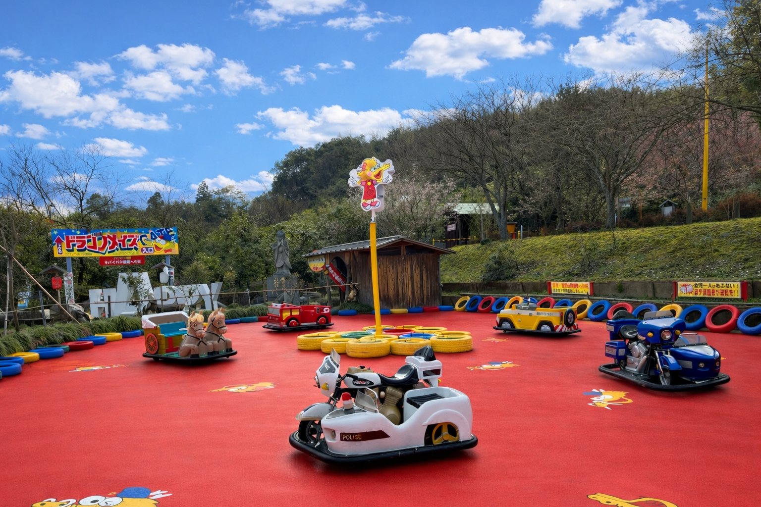 ちびっ子カーランド 2025.01.192026.03.17 遊び方 お金を入れて、足元のボタンを踏んでスタート!乗り物に付いているボタンを押すと音が鳴るよ♪ 料金 1回 100円(約2分間走ります) ご利用について 雨天時はご利用できません ・幼児には必ず保護者の方が同乗してください。・車同士をぶつけたり、蹴ったり危険な行為はご遠慮ください。 乱暴な運転を確認した場合はご利用を中止していただきます。・利用中の事故等については当社は一切責任を負いません。・故意に車両等を破損した場合には利用者側に弁償を求めます。